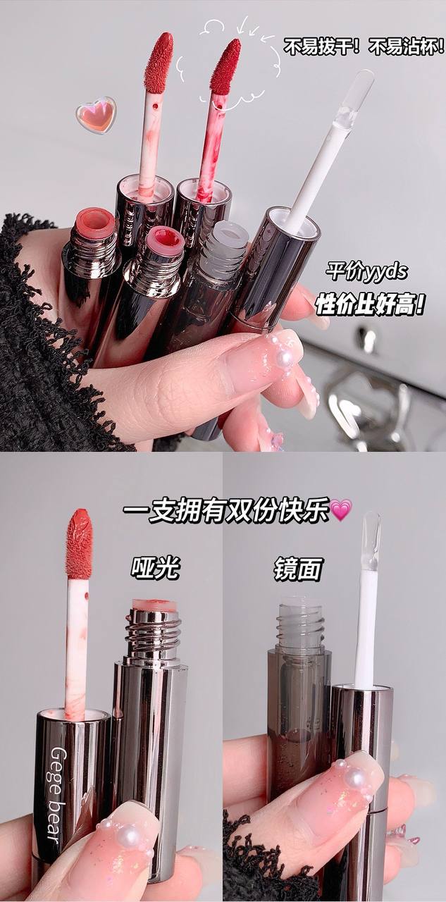 لیپ گلاس و رژ مخملی دو سر Gege Bear