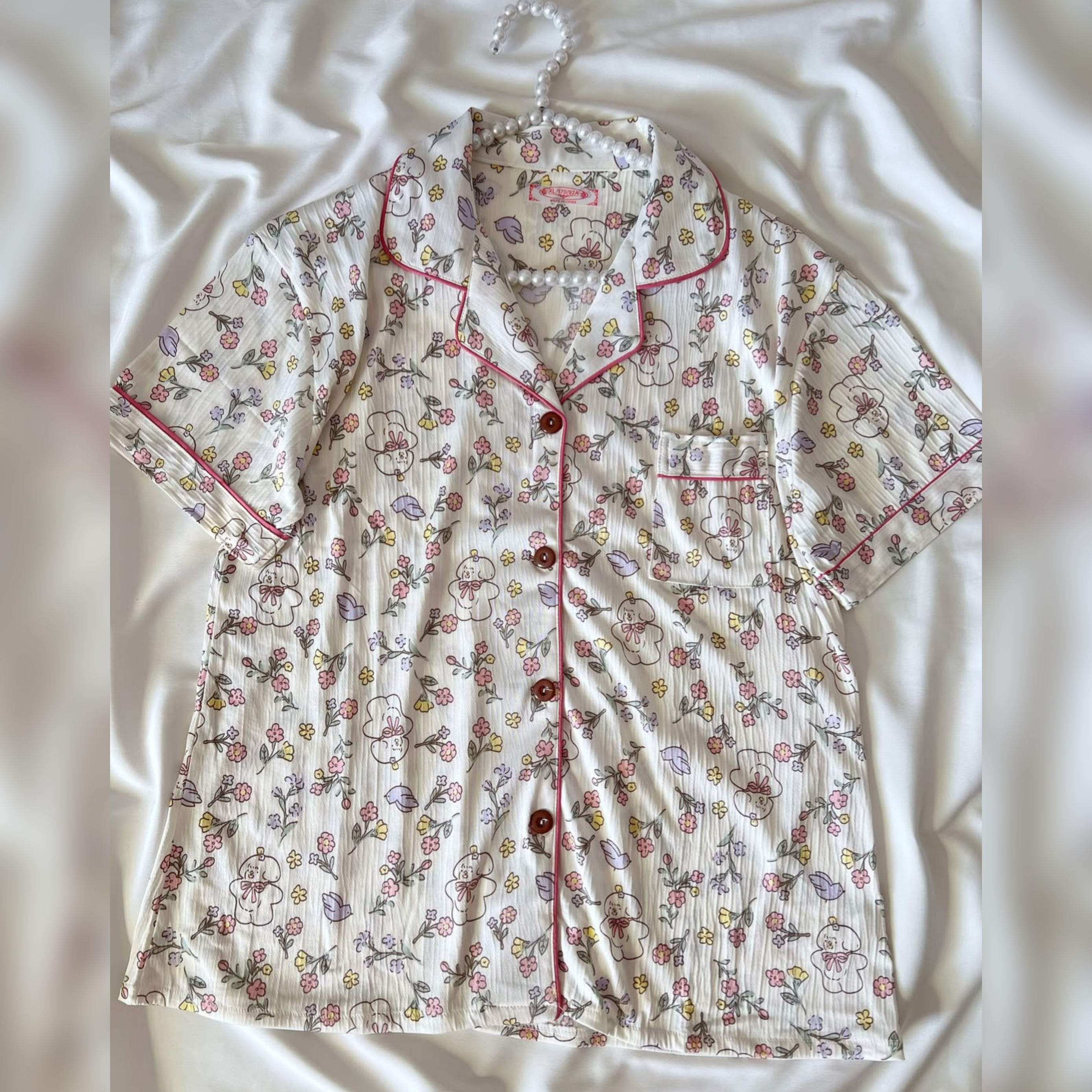 بلوز آستین کوتاه یقه دار و جلو دکمه